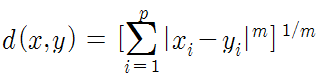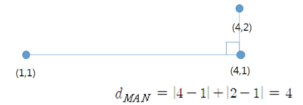 1) 수학적 거리: 유클리드 거리, 맨하튼 거리, 민코우스키 거리