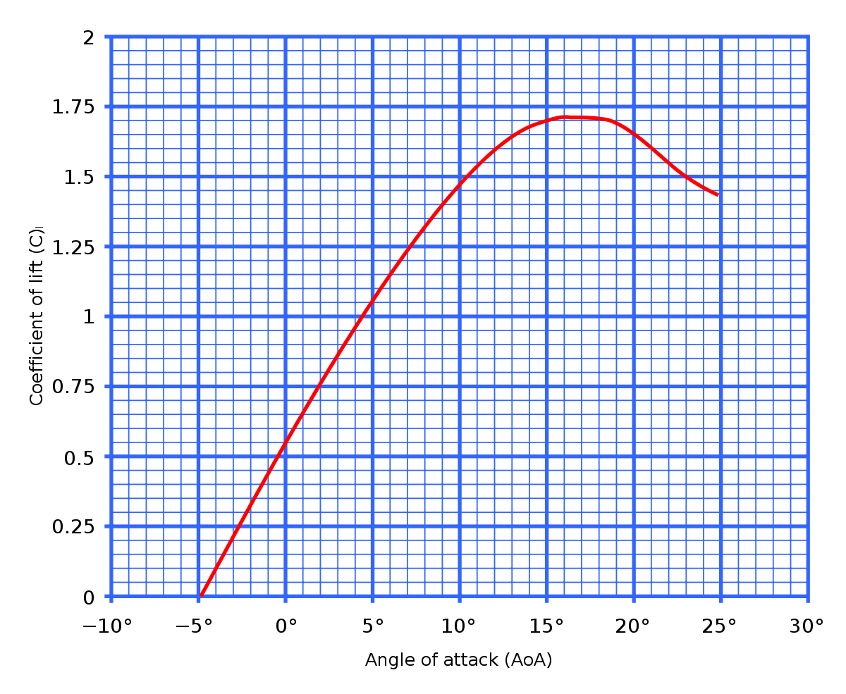 (Lift Curve of SM701 airfoil showing the relationship between angle of attack and lift coefficient, Wikipedia)