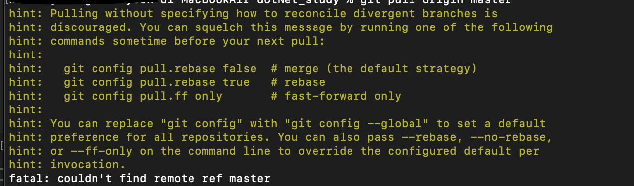 맥북에서 git을 처음 셋팅하고 pull로 받으려고 하니 해당 에러가 발생했다.