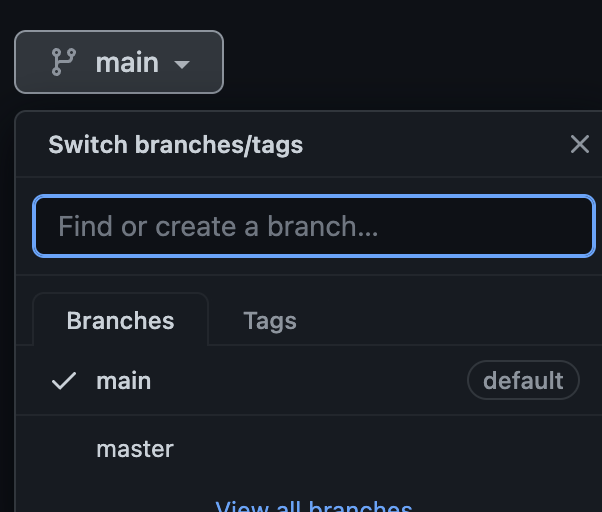 Git Repository로 가서 기본 생성 브랜치 이름을 확인해보니 master가 아니라 main으로 되어 있어서